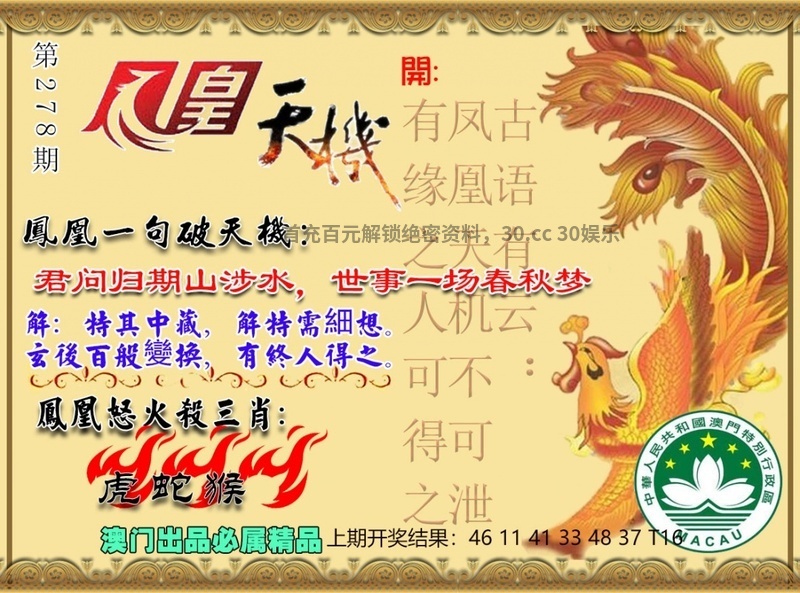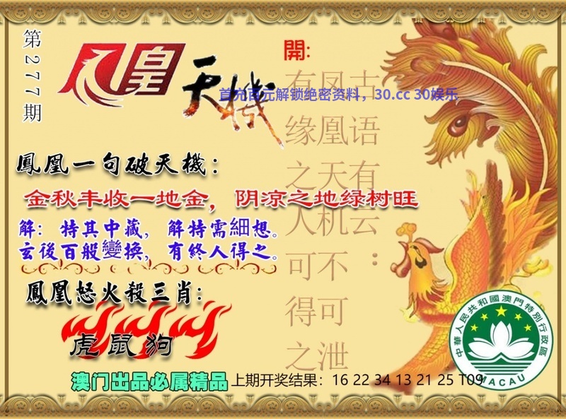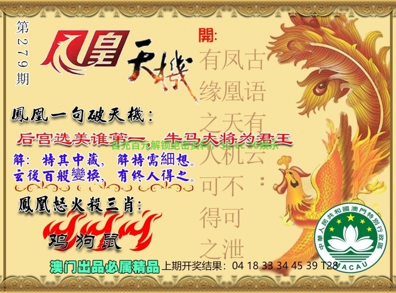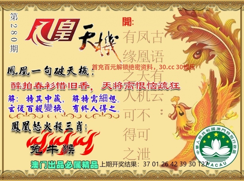 282期:凤凰一句破天机:猴牛马鸡家中有,金银财宝随手来